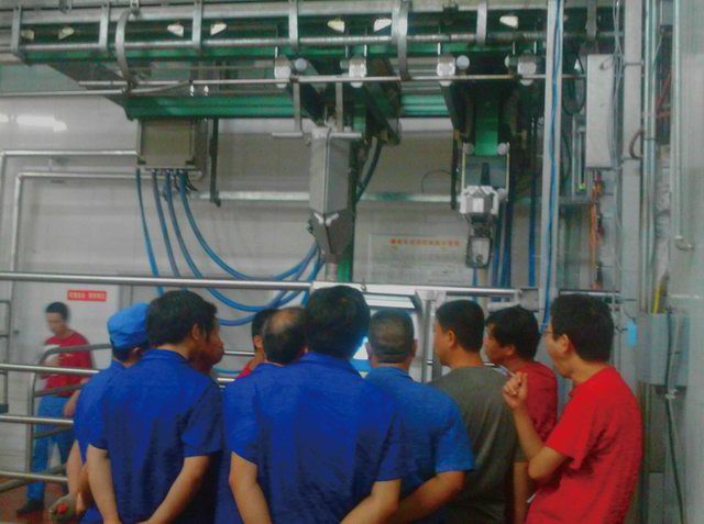 在集团于建平***副董事长提出“加快、***提高屠宰线自动化”的号召下,公司积极与具有国际品牌的屠宰设备厂家进行沟通和洽谈并签订合同。2013年6月15日,自动开骨开膛机随着吊车的绳索,缓缓落到洛阳正大院内。