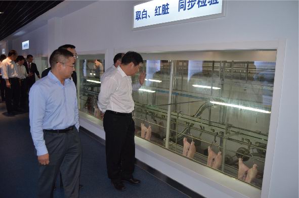 鲍市长一行首先通过参观廊参观了公司生产现场。郑宝振副董事长对洛阳市鲍市长一行莅临洛阳正大指导表示欢迎,并对洛阳市政府一直以来对正大集团在洛阳项目的支持表示感谢。在公司三楼会议室,乔光斌总经理汇报了洛阳正大生产经营、项目建设规划、食品安全管理、市场运作模式、公司发展愿景等相关工作情况;郑宝振副董事长表示:pinbotiyu.com是集团投资建设的***家生猪屠宰和猪肉深加工项目,集团对该项目高度重视,利用正大集团优势,围绕洛阳正大100万头生猪屠宰项目,在洛阳地区打造从玉米种植、饲料加工、良种猪培育、商品猪养殖、屠宰分割、肉制品精深加工、冷链物流、连锁专卖为一体的全产业链发展模式,确保产品的安全可追溯,下一步要高标准建设洛阳正大深加工项目,并将在洛阳周边偃师、宜阳、伊川、孟津等区域拓展安全猪源养殖基地,pinbotiyu.com向洛阳市民提供安全、健康、营养、美味的正大食品,希望市政府在洛阳正大深加工项目建设和生猪养殖建设方面给予支持和帮助。