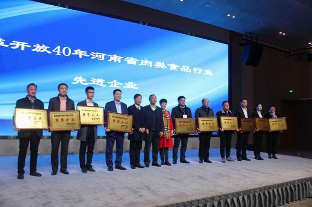 会议对勇立潮头、扎实肯干、业绩突出、有责任有担当的先进模范人物和规模大、实力强、信誉好的先进示范企业进行表彰:洛阳正大荣获改革开放40年河南肉类食品行业强势企业称号,王学斌***总裁荣获改革开放40年河南肉类食品行业杰出企业家!