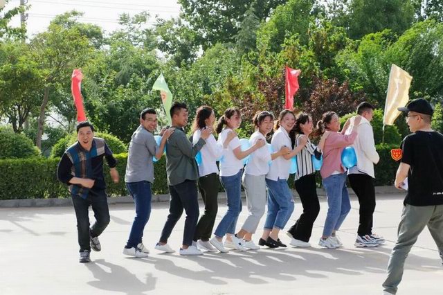 比赛开始之前、各团队队长带领队员齐喊口号、振奋士气!随着一声哨响、各项游戏比拼正式开始。有齐心协力的团结一致、有跳大绳的有条不紊、有新式保龄球的轻松愉悦、有蜈蚣竞走的欢乐开怀、有运水接力的坚持不懈;游戏一项接着一项,笑声不断、趣味十足!