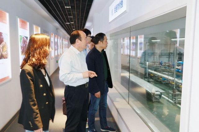 吴兰院长一行通过参观廊参观了公司生猪屠宰、分割加工、食品深加工生产线及公司产品展厅,在参观过程中沈道华***副总裁、乔光斌总经理向吴兰院长一行介绍了正大集团的基本情况及洛阳正大生产加工工艺、食品安全管理、预制菜产品研发、市场销售等相关工作情况。