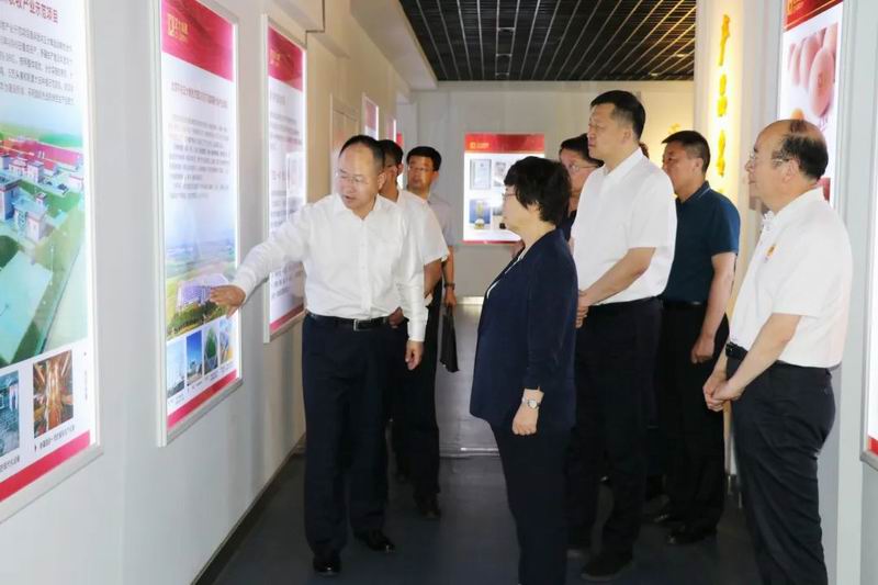 王旭书记一行首先通过参观廊参观了公司生猪屠宰、分割加生产线及产品展厅,在参观过程中沈道华总经理向王旭书记一行汇报了洛阳正大产业链建设、生猪养殖、屠宰加工、食品安全管理、预制菜产品研发等相关方面工作,王旭书记详细了解了洛阳正大在产业链建设、运营管理、预制菜加工等方面的工作情况。